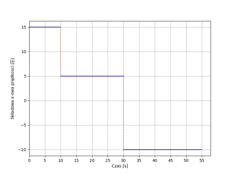Rowerzysta podczas swojej jazdy kilkukrotnie zmieniał prędkość jazdy. Na wykresie poniżej przedstawiono zmiany składowej x-owej jego prędkości. W oparciu o wykres oblicz jaka jest średnia składowa x-owa jego prędkości na całej trasie. [podpowiedź + odpowiedź + rozwiązanie]
