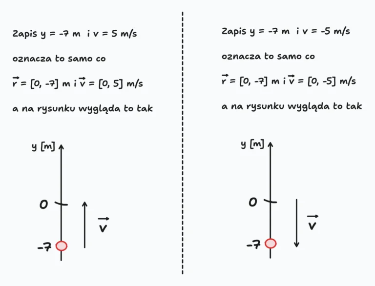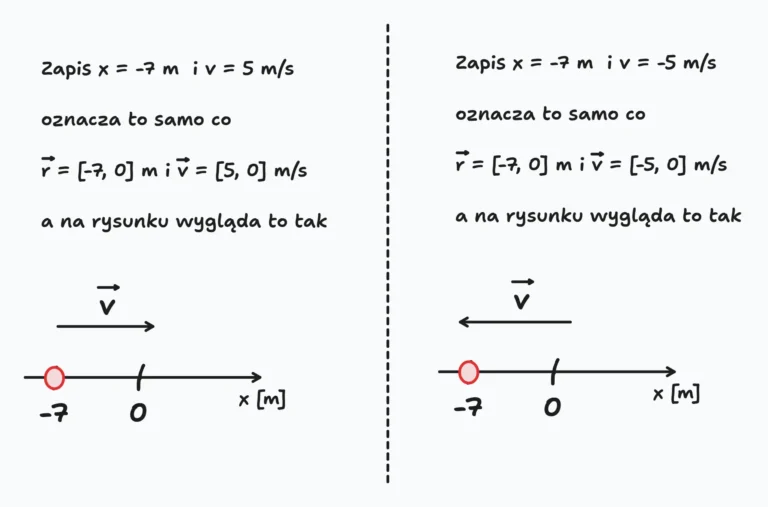 Taki uproszczony sposób zapisu ludzie używają również do innych wektorów takich jak np. przyspieszenie, czy siła (do tego dojdziemy za jakiś czas). Ale pamiętaj, to jest uproszczenie i nie wszyscy je uznają. Więc przed użyciem skonsultuj to z nauczycielem bądź wykładowcą, gdyż każde uproszczenie niewłaściwie stosowane zagraża twojej ocenie.